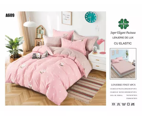 Lenjerie de pat Bumbac Finet 6 piese cu elastic -PUC10
