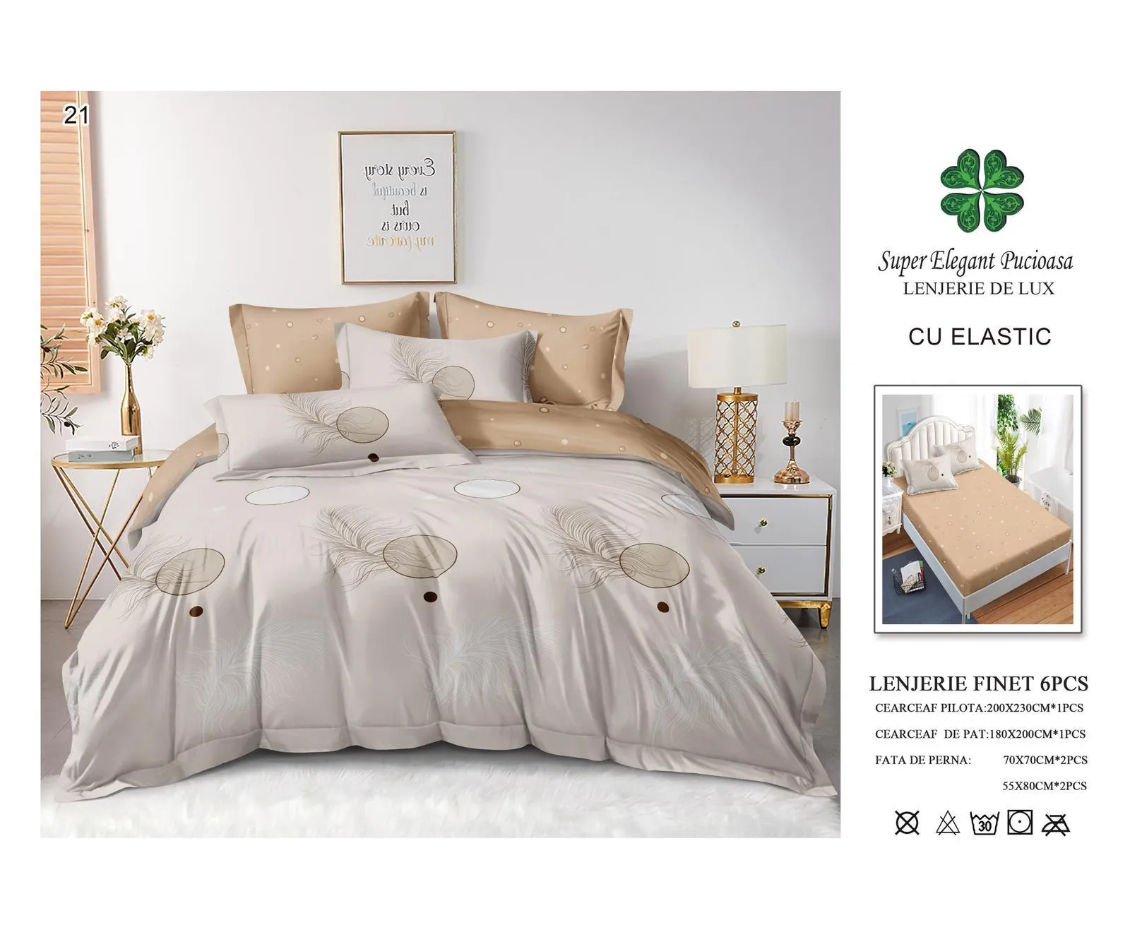 Lenjerie de pat Bumbac Finet 6 piese cu elastic -PUC26