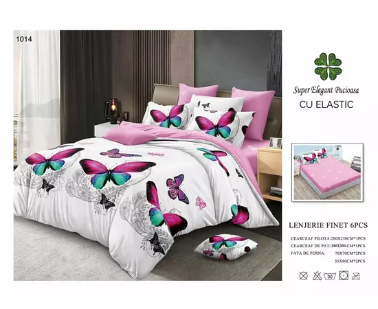 Lenjerie de pat Bumbac Finet 6 piese cu elastic -PUC27
