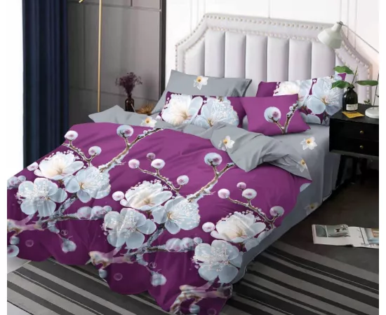 Este moale, ceea ce aduce o nota de confort. Cu toate acestea este si un material dur, asa ca in timp nu se deterioreaza atat de usor si pastreaza rezistenta si la culorile, design-ul unei lenjerii. Lenjeriile de pat dublu cu imprimeu sunt realizate folosind reactivi astfel ca nu vor iesi culorile la spalare. Materialul este bumbac finet-satinat cu o greutate de 215 gr / mp.