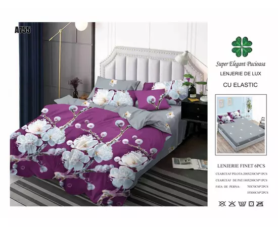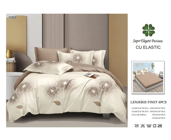 Lenjerie de pat Bumbac Finet 6 piese cu elastic - PUC37