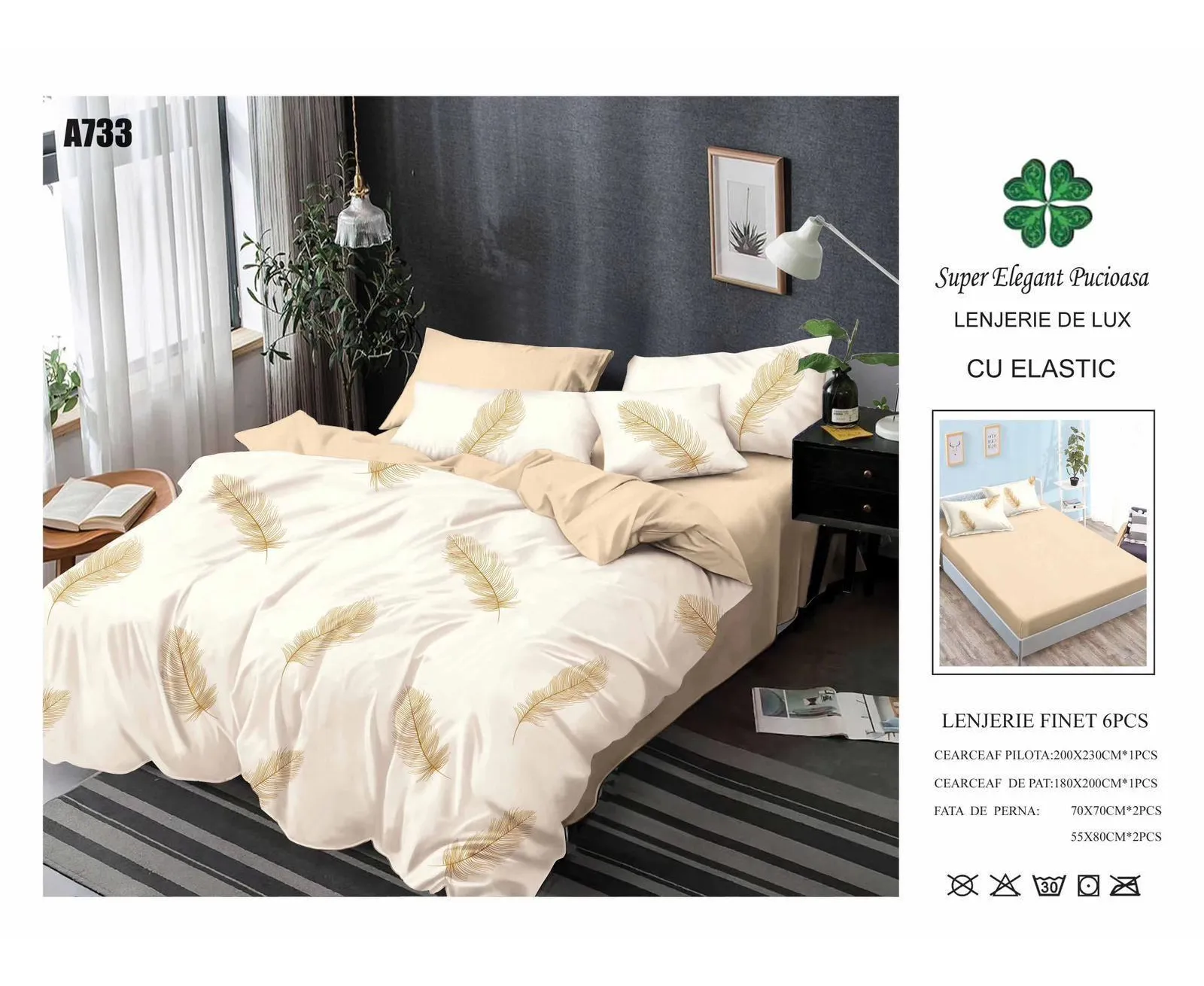 Lenjerie de pat Bumbac Finet 6 piese cu elastic - PUC39