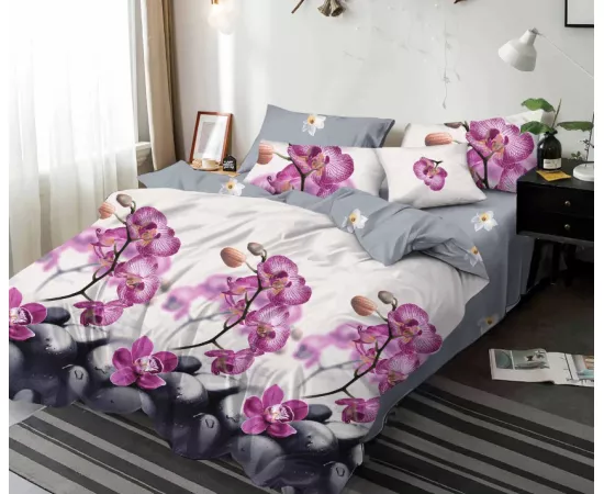 Este moale, ceea ce aduce o nota de confort. Cu toate acestea este si un material dur, asa ca in timp nu se deterioreaza atat de usor si pastreaza rezistenta si la culorile, design-ul unei lenjerii. Lenjeriile de pat dublu cu imprimeu sunt realizate folosind reactivi astfel ca nu vor iesi culorile la spalare. Materialul este bumbac finet-satinat cu o greutate de 215 gr / mp.