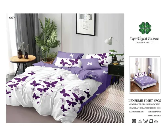 Lenjerie de pat Bumbac Finet 6 piese cu elastic - PUC43
