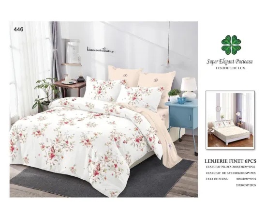 Lenjerie de pat Bumbac Finet 6 piese cu elastic - PUC44