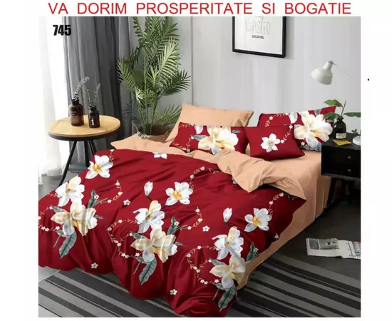 Este moale, ceea ce aduce o nota de confort. Cu toate acestea este si un material dur, asa ca in timp nu se deterioreaza atat de usor si pastreaza rezistenta si la culorile, design-ul unei lenjerii. Lenjeriile de pat dublu cu imprimeu sunt realizate folosind reactivi astfel ca nu vor iesi culorile la spalare. Materialul este bumbac finet-satinat cu o greutate de 215 gr / mp.