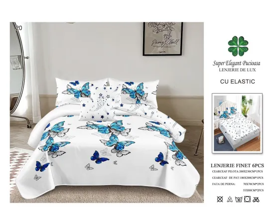 Lenjerie de pat Bumbac Finet 6 piese cu elastic - PUC46