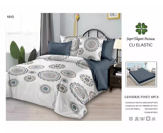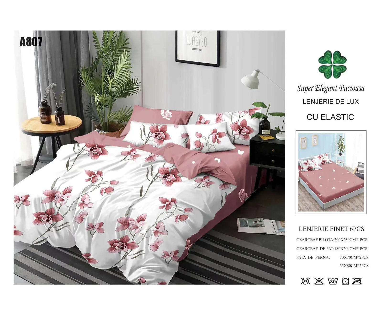 Lenjerie de pat Bumbac Finet 6 piese cu elastic - PUC49