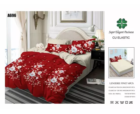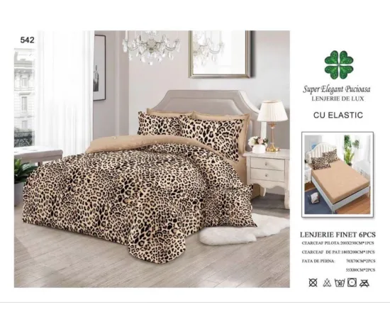 Lenjerie de pat Bumbac Finet 6 piese cu elastic - PUC5