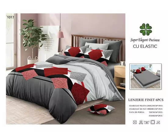 Lenjerie de pat Bumbac Finet 6 piese cu elastic - PUC50