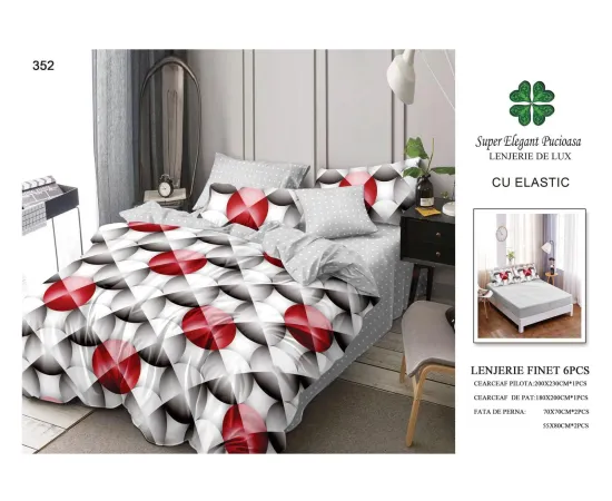 Lenjerie de pat Bumbac Finet 6 piese cu elastic - PUC52