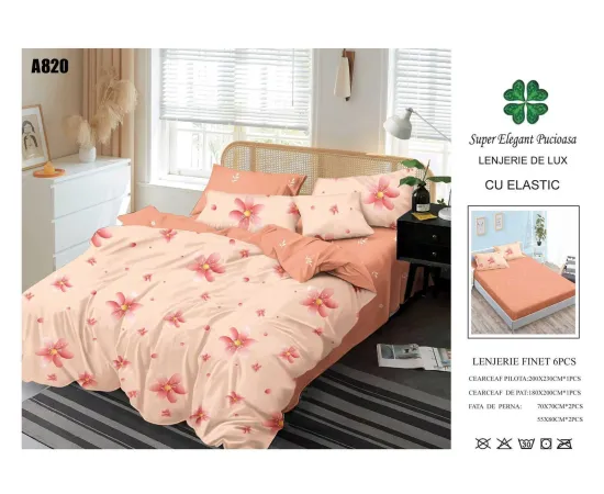 Lenjerie de pat Bumbac Finet 6 piese cu elastic - PUC55