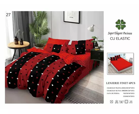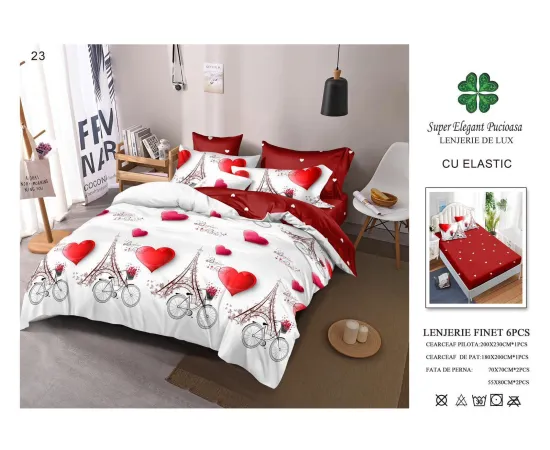 Lenjerie de pat Bumbac Finet 6 piese cu elastic - PUC62