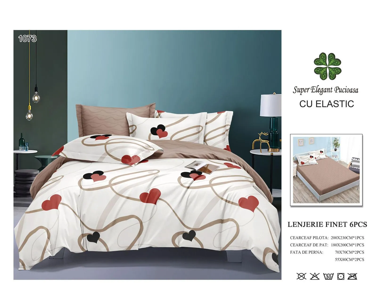 Lenjerie de pat Bumbac Finet 6 piese cu elastic - PUC63