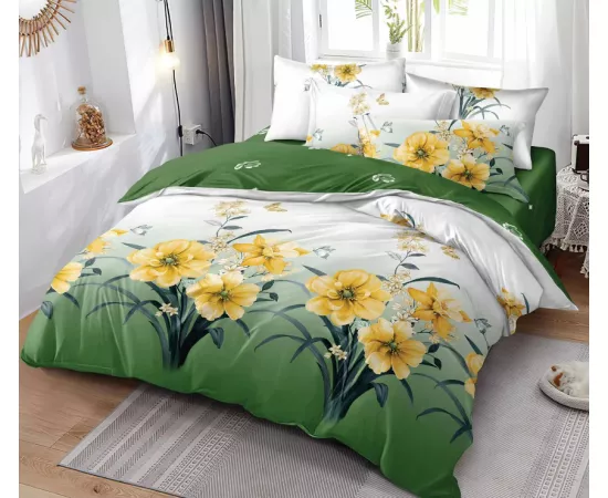 Este moale, ceea ce aduce o nota de confort. Cu toate acestea este si un material dur, asa ca in timp nu se deterioreaza atat de usor si pastreaza rezistenta si la culorile, design-ul unei lenjerii. Lenjeriile de pat dublu cu imprimeu sunt realizate folosind reactivi astfel ca nu vor iesi culorile la spalare. Materialul este bumbac finet-satinat cu o greutate de 215 gr / mp.