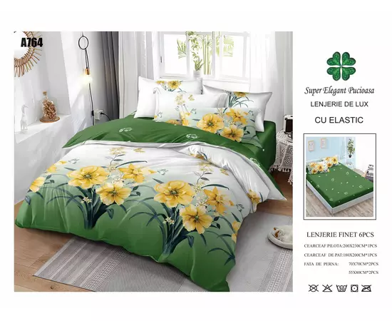 Lenjerie de pat Bumbac Finet 6 piese cu elastic - PUC66
