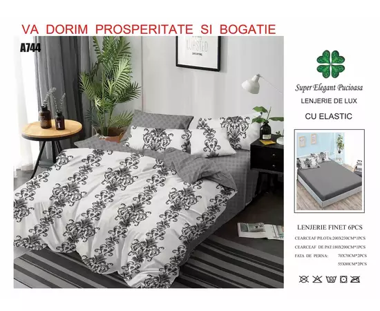 Lenjerie de pat Bumbac Finet 6 piese cu elastic - PUC76