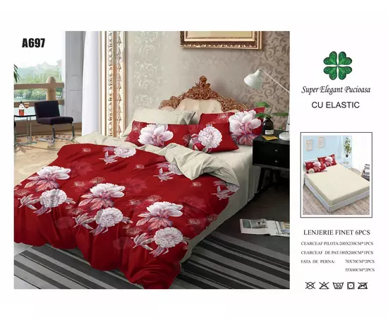 Lenjerie de pat Bumbac Finet 6 piese cu elastic - PUC86