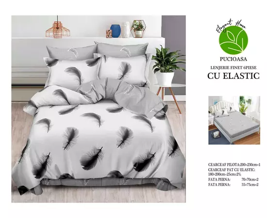 Lenjerie de pat Bumbac Finet 6 piese cu elastic - SIPRT130