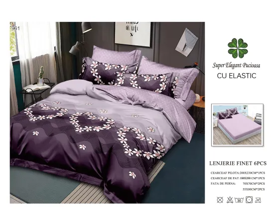 - cearceaf pentru pat cu elastic 180x200cm - cearceaf pentru pilota 200x230cm - 2 bucati fete de perne 50x75cm + 2 bucati fete de perne 70x70cm