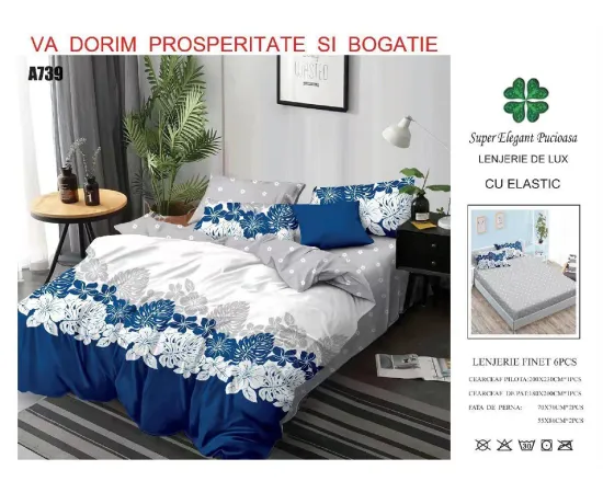 Lenjerie de pat Bumbac Finet 6 piese cu elastic - PUC36
