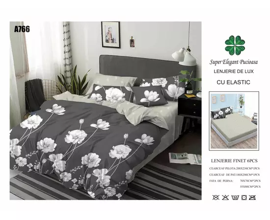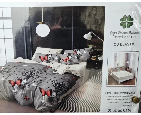 Lenjerie de pat Bumbac Finet 6 piese cu elastic - PUC38