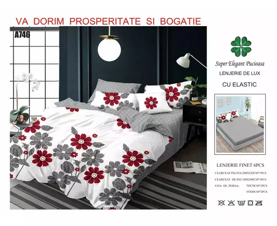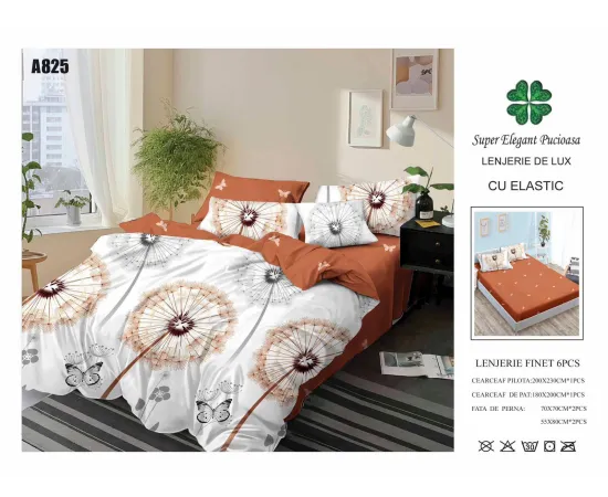 Lenjerie de pat Bumbac Finet 6 piese cu elastic - PUC53