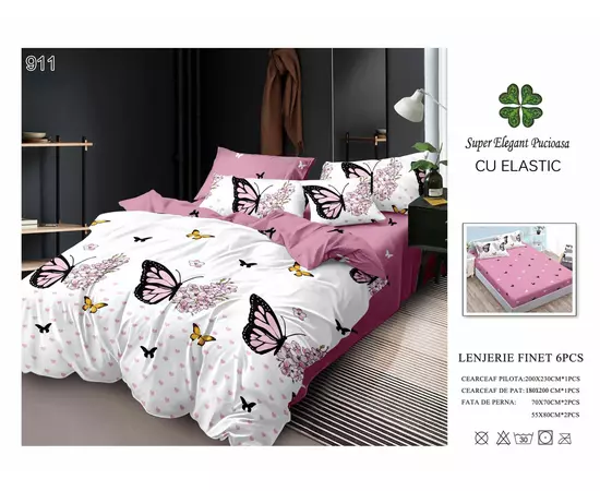 Lenjerie de pat Bumbac Finet 6 piese cu elastic - PUC59