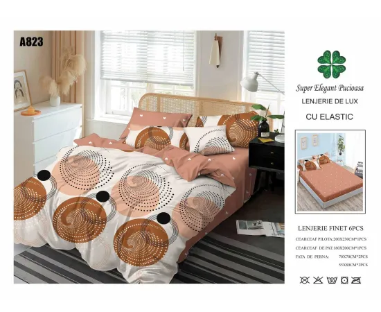 Lenjerie de pat Bumbac Finet 6 piese cu elastic - PUC60