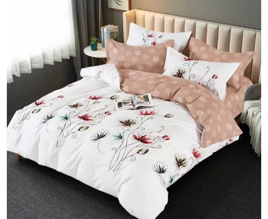 Este moale, ceea ce aduce o nota de confort. Cu toate acestea este si un material dur, asa ca in timp nu se deterioreaza atat de usor si pastreaza rezistenta si la culorile, design-ul unei lenjerii. Lenjeriile de pat dublu cu imprimeu sunt realizate folosind reactivi astfel ca nu vor iesi culorile la spalare. Materialul este bumbac finet-satinat cu o greutate de 215 gr / mp.