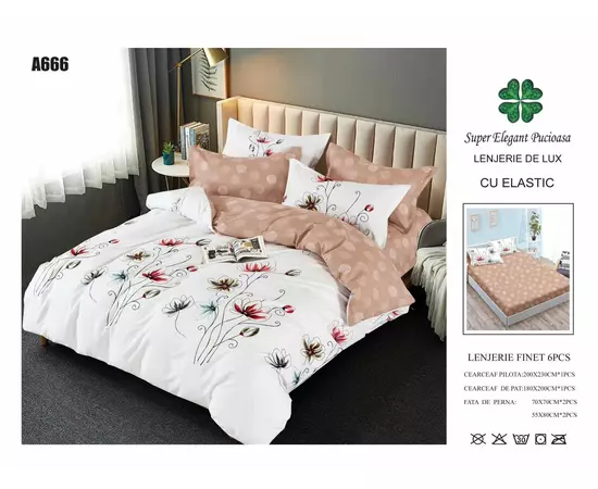 Lenjerie de pat Bumbac Finet 6 piese cu elastic - PUC64