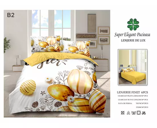 Lenjerie de pat Bumbac Finet, 6 Piese , Model de Paste - PUC226
