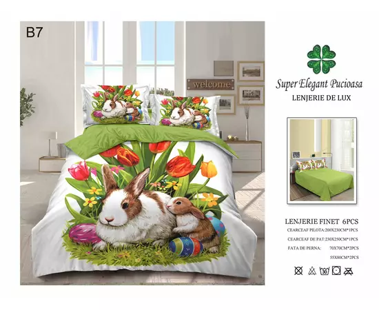 Lenjerie de pat Bumbac Finet, 6 Piese , Model de Paste - PUC228