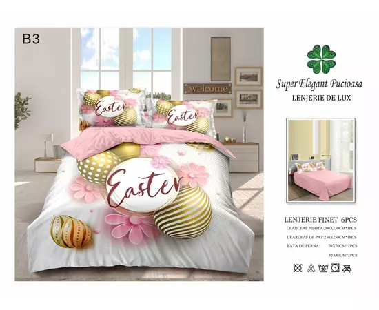 Lenjerie de pat Bumbac Finet, 6 Piese , Model de Paste - PUC231