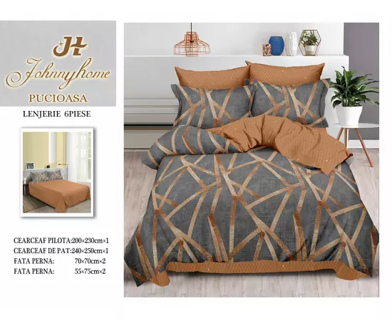 Lenjerie de Pat pentru 2 persoane cu 6 piese confectionata din Bumbac Finet.