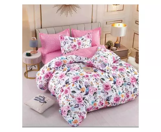Lenjerie de Pat pentru 2 persoane cu 6 piese confectionata din Bumbac Finet.
