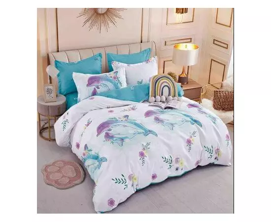 Lenjerie de Pat, Bumbac Finet, 6 Piese, Pat Dublu -JO73