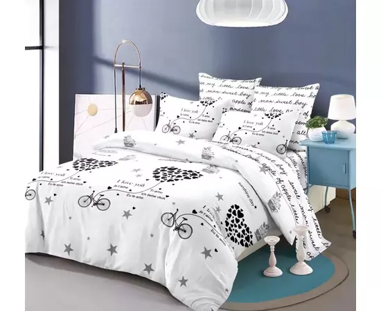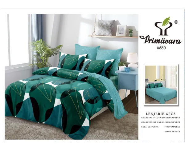 Lenjerie de Pat pentru 2 persoane cu 6 piese confectionata din Bumbac Finet.