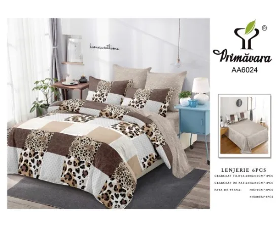 Lenjerie de Pat pentru 2 persoane cu 6 piese confectionata din Bumbac Finet.