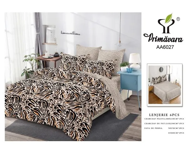 Lenjerie de Pat pentru 2 persoane cu 6 piese confectionata din Bumbac Finet.