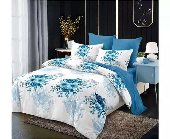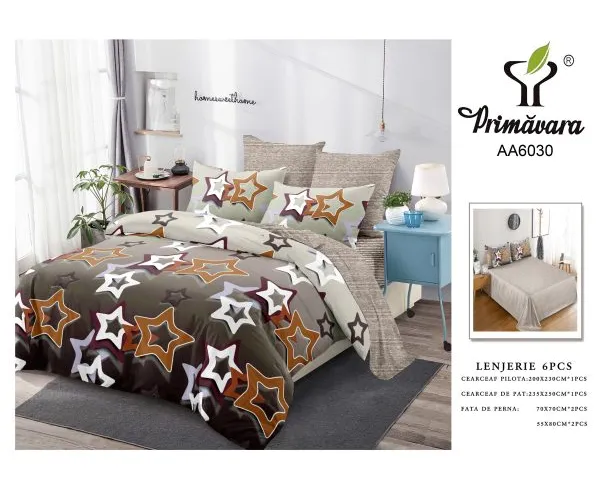 Lenjerie de Pat pentru 2 persoane cu 6 piese confectionata din Bumbac Finet.
