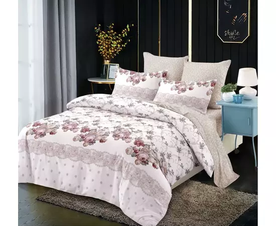 Este moale, ceea ce aduce o nota de confort. Cu toate acestea este si un material dur, asa ca in timp nu se deterioreaza atat de usor si pastreaza rezistenta si la culorile, design-ul unei lenjerii. Lenjeriile de pat dublu cu imprimeu sunt realizate folosind reactivi astfel ca nu vor iesi culorile la spalare. Materialul este bumbac finet-satinat cu o greutate de 215 gr / mp.
