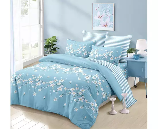 Lenjerie de Pat pentru 2 persoane cu 6 piese confectionata din Bumbac Finet.