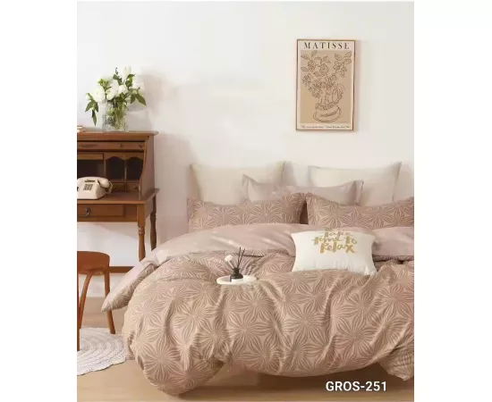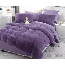 Lenjerie de Pat pentru 2 persoane cu 6 piese confectionata din Bumbac Finet.
