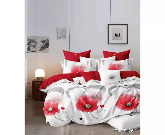 Lenjerie de Pat pentru 2 persoane cu 6 piese confectionata din Bumbac Finet.