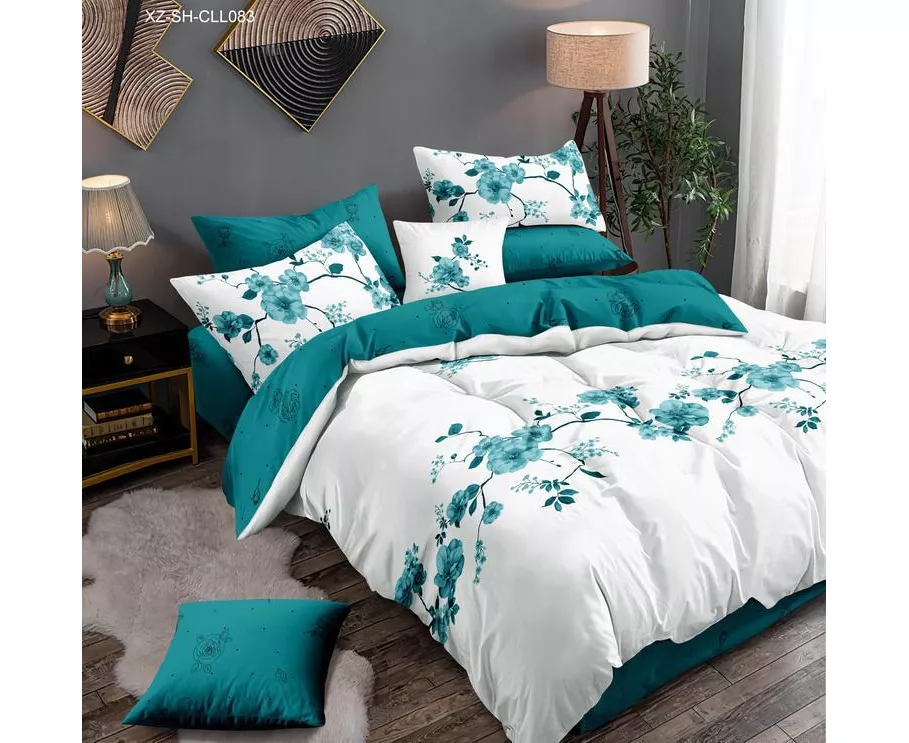 Lenjerie de Pat pentru 2 persoane cu 6 piese confectionata din Bumbac Finet.