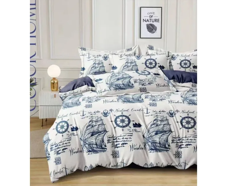 Lenjerie de Pat pentru 2 persoane cu 6 piese confectionata din Bumbac Finet.