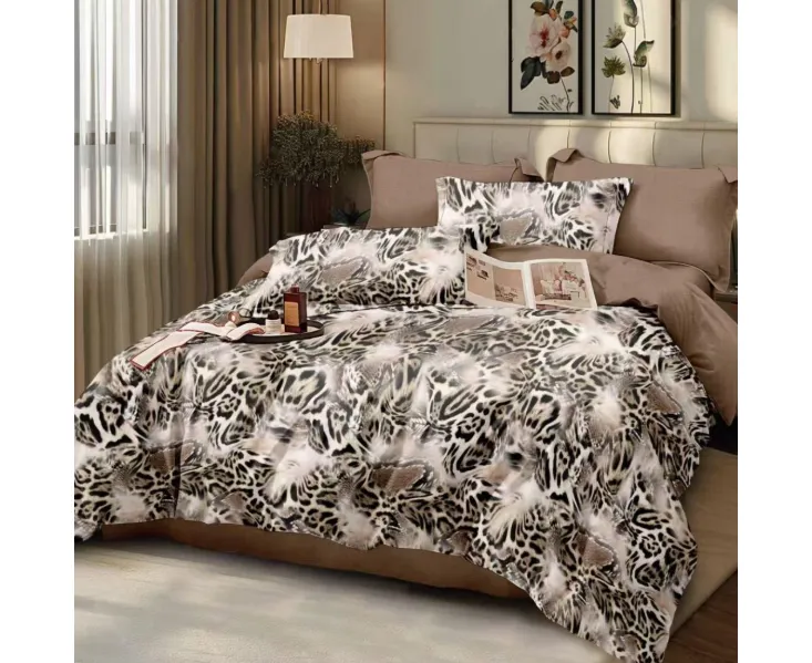 Este moale, ceea ce aduce o nota de confort. Cu toate acestea este si un material dur, asa ca in timp nu se deterioreaza atat de usor si pastreaza rezistenta si la culorile, design-ul unei lenjerii. Lenjeriile de pat dublu cu imprimeu sunt realizate folosind reactivi astfel ca nu vor iesi culorile la spalare. Materialul este bumbac finet-satinat cu o greutate de 215 gr / mp.