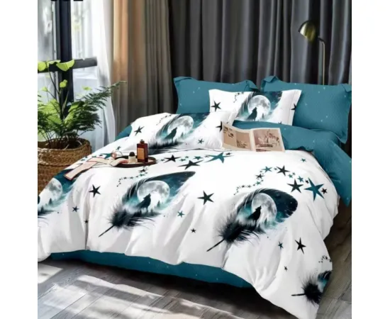 Este moale, ceea ce aduce o nota de confort. Cu toate acestea este si un material dur, asa ca in timp nu se deterioreaza atat de usor si pastreaza rezistenta si la culorile, design-ul unei lenjerii. Lenjeriile de pat dublu cu imprimeu sunt realizate folosind reactivi astfel ca nu vor iesi culorile la spalare. Materialul este bumbac finet-satinat cu o greutate de 215 gr / mp.