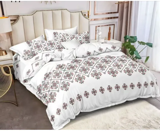 Lenjerie de Pat pentru 2 persoane cu 6 piese confectionata din Bumbac Finet.